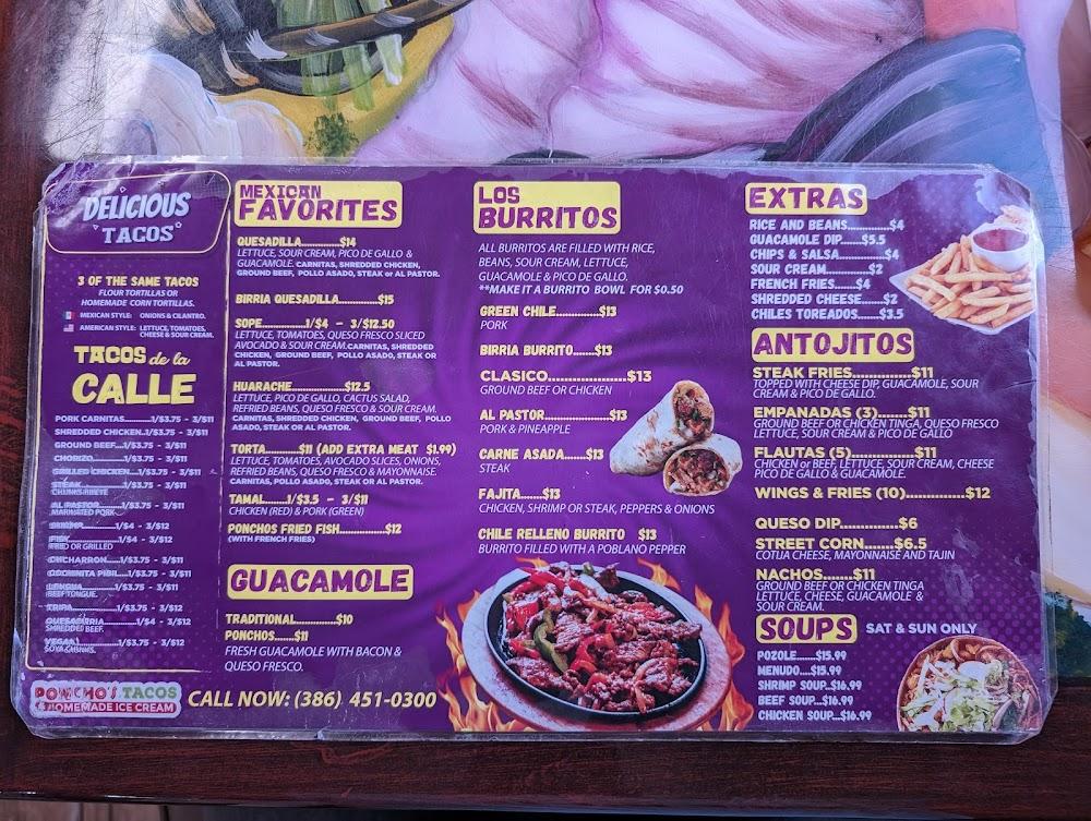 Discover the vibrant flavors of Mexico at Ponchos Tacos & Mexican Ice Cream in Daytona Beach! Nestled at 201 Seabreeze Blvd, our restaurant serves up delicious tacos, traditional Mexican dishes, and the best homemade Mexican ice cream in town. Enjoy a casual, laid-back atmosphere perfect for solo diners, families, and groups alike. With convenient amenities like outdoor seating, takeout, and delivery options, savor quick yet authentic meals. Plus, our wheelchair-accessible facilities ensure everyone can join in on the fun. Visit us for a delightful culinary experience, whether it’s lunch, dinner, or a sweet treat!